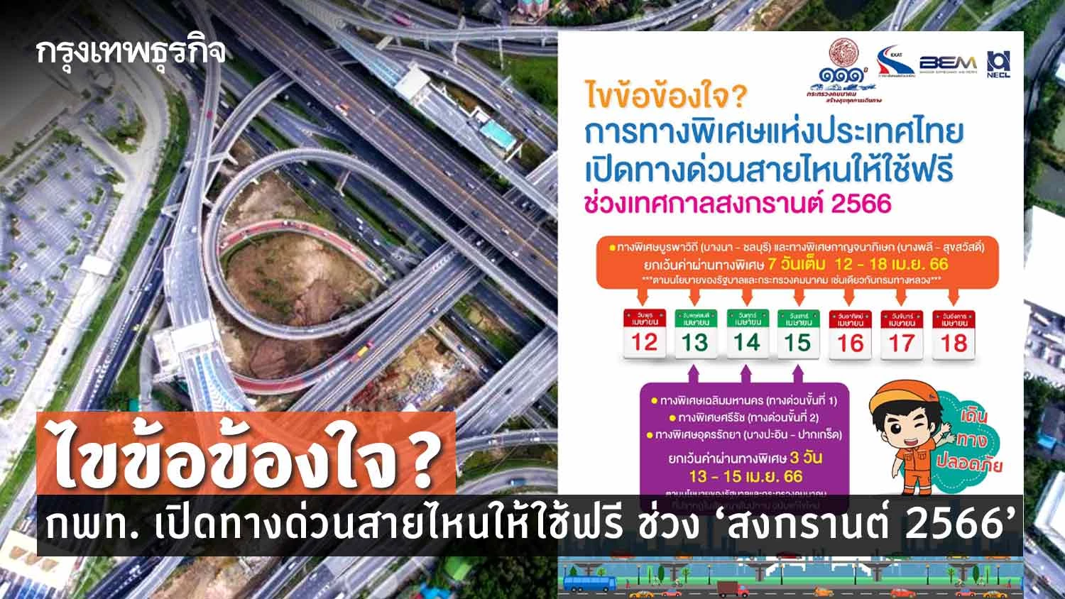 สงกรานต 2566 เช กท น ทางด วนฟร ช วงเทศกาล 12 18 เม ย Pptvhd36