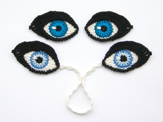 Crochet Pattern Eyes Bookmark And Applique Motif For Dolls Etsy Uk